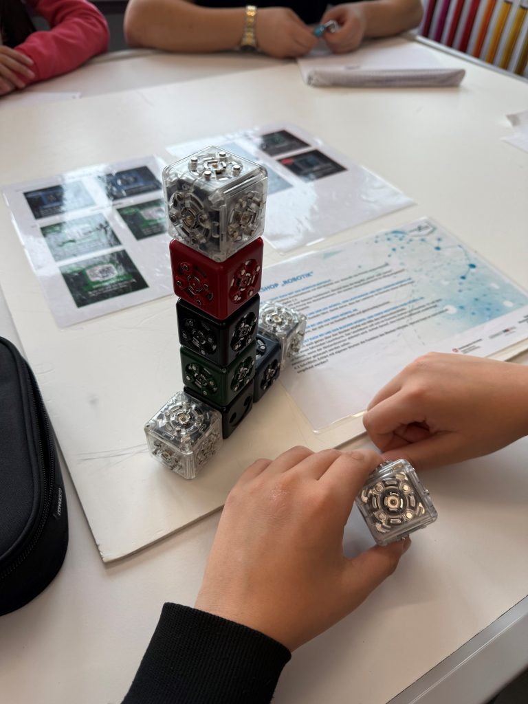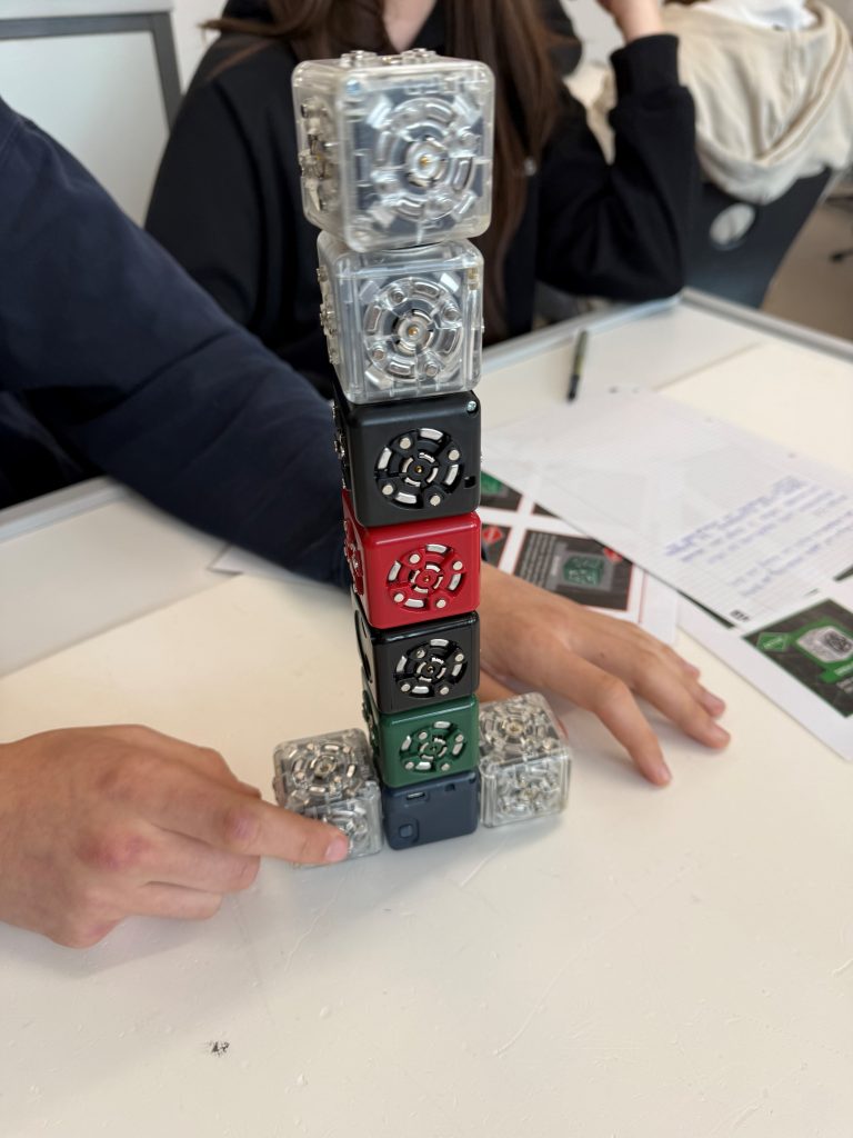 Wir erhielten Tipps, wie wir uns selbst besser einschätzen oder gemeinsam mit unseren Eltern passende Berufsfelder erkunden können. Als Teilnehmende haben wir ganz ohne Programmierkenntnisse, aber mit viel Kreativität, die Grundprinzipien der Robotik kennengelernt. Mit kleinen Würfeln, die verschiedene Funktionen hatten, bauten wir Maschinen, die zum Beispiel Hindernisse erkennen oder an einem Abgrund anhalten konnten. Dadurch wurde Robotik für uns greifbar und wir haben besser verstanden, wie sie im Alltag und in der Arbeitswelt eingesetzt wird. Außerdem haben wir auf spielerische Weise Einblicke in verschiedene IT-Berufe bekommen und erfahren, welche Möglichkeiten es später für uns geben kann.